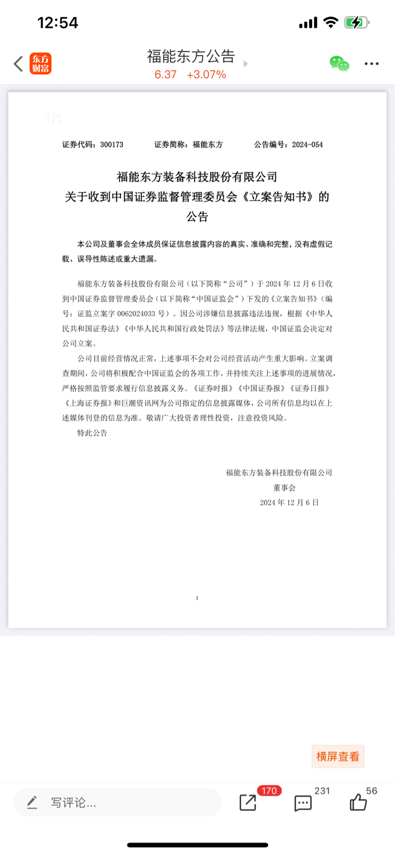 $福能东方(SZ300173)$ 托太多了,立案快出结果了,大雷避一避~