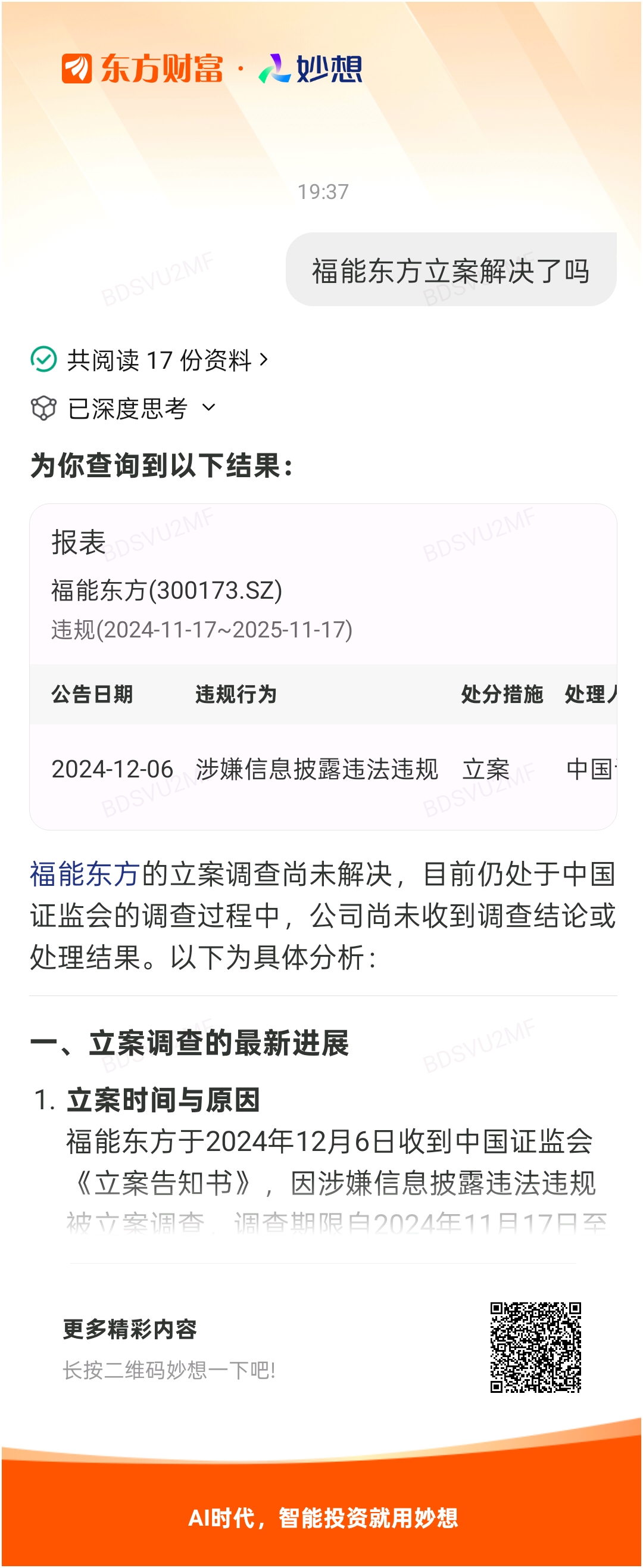 #@妙想,你怎么看?# 妙想一下:福能东方立案解决了吗