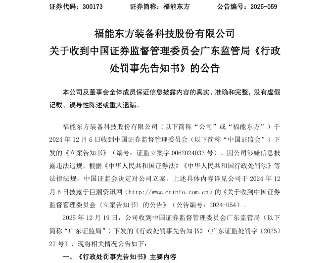 动态:拟处罚下达。您是否在索赔范围内?维权时间节点至关重要!2021年4月14日至2024年12月6日之间买入300173福能东方,且在2024年12月7日(含当日)之后卖出或继续持有者。以上索赔登记条件仅代表证威律所观点。不作为任何证券投资决策和买卖建议,最终以法院的认定结果为准。 了解更多点头像看企业信息 或 查看 证威律所 相关信息