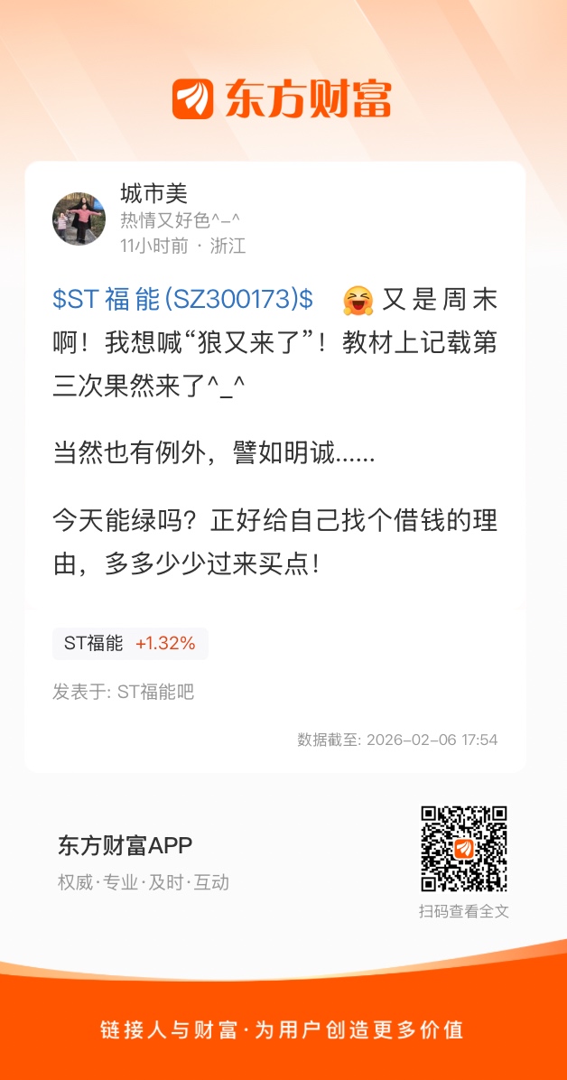 温馨提示: 1.根据《证券法》规定,禁止编造、传播虚假信息或者误导性信息,扰乱证券市场;2.用户在本社区发表的所有资料、言论等仅代表个人观点,与本网站立场无关,不对您构成任何投资建议。用户应基于自己的独立判断,自行决定证券投资并承担相应风险。《东方财富社区管理规定》