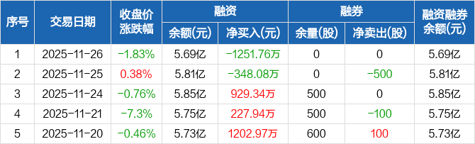 元力股份:融资净偿还1251.76万元,融资余额5.69亿元(11-26)