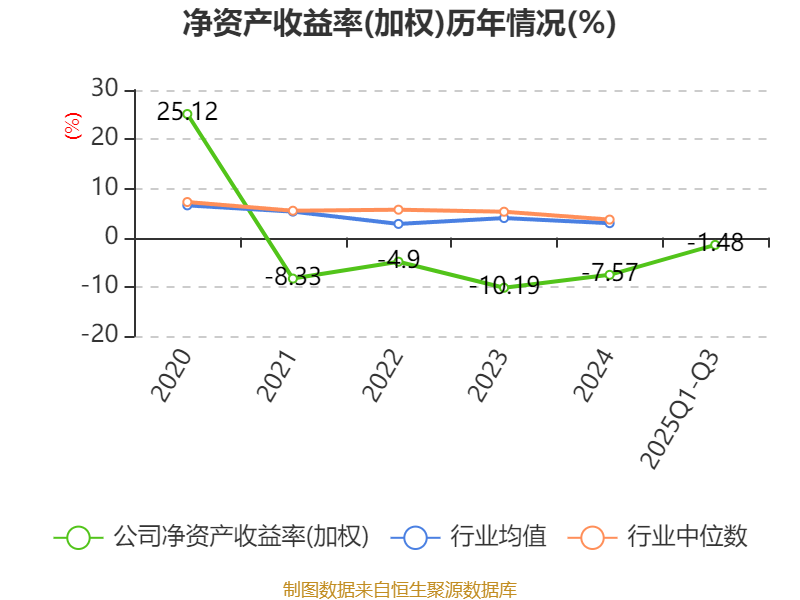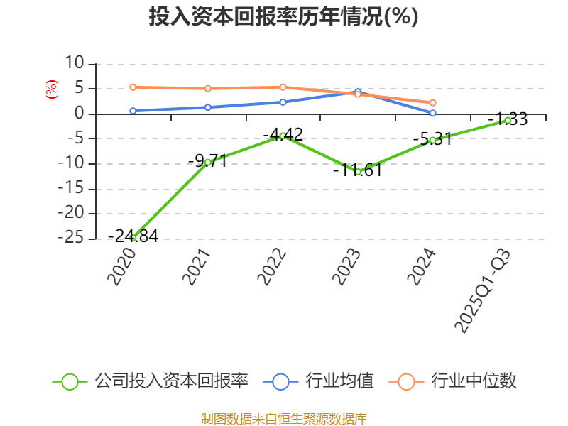 盈利能力方面, 2025年前三季度公司加权平均净资产收益率为-1.48%,同比上升4.65个百分点。公司2025年前三季度投入资本回报率为-1.33%,较上年同期上升3.21个百分点。