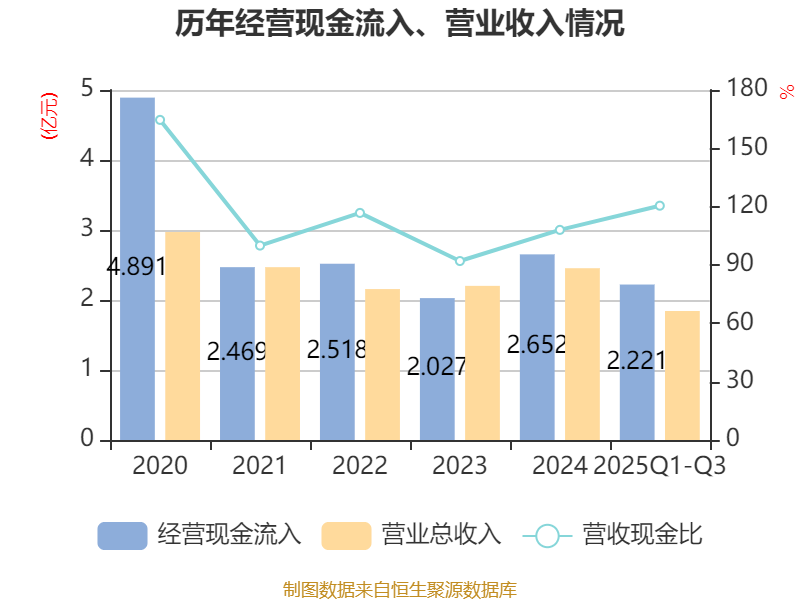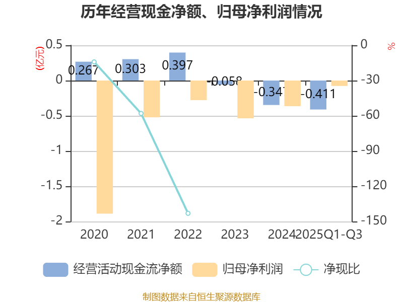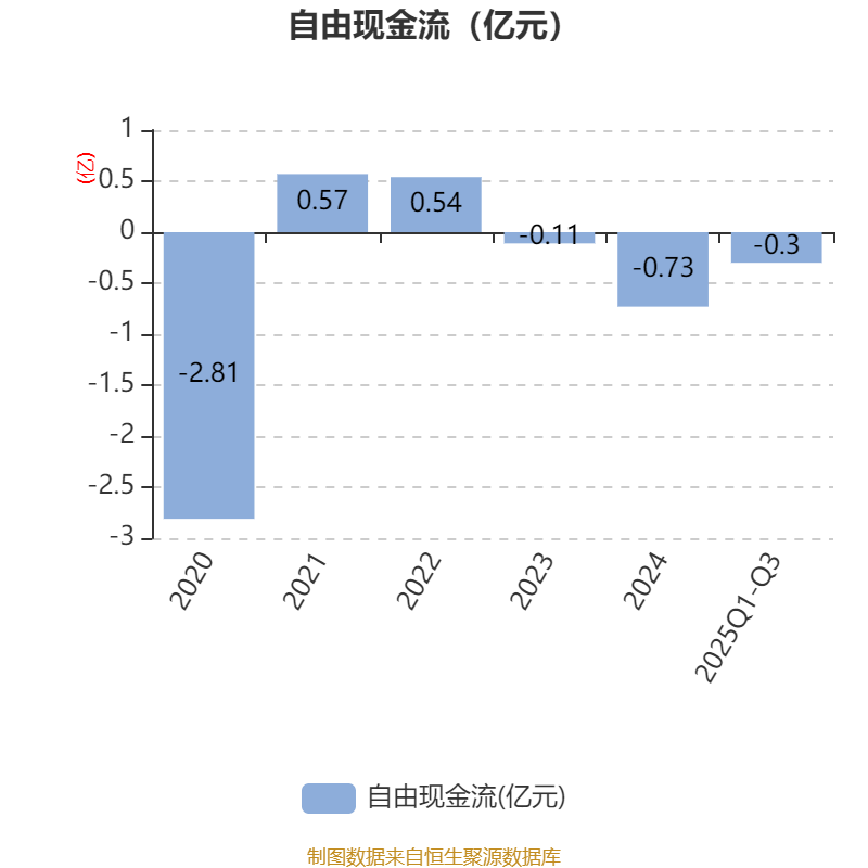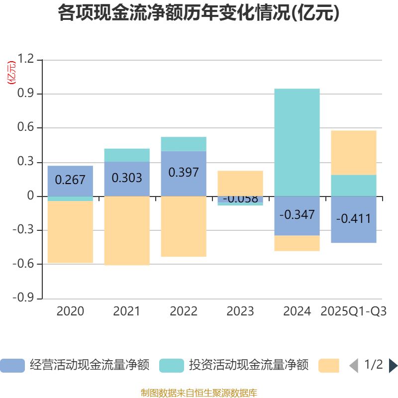 2025年前三季度,公司经营活动现金流净额为-4112.69万元,同比减少9295.65万元;筹资活动现金流净额3886.21万元,同比增加5228.44万元;投资活动现金流净额1880.39万元,上年同期为3298.79万元。
