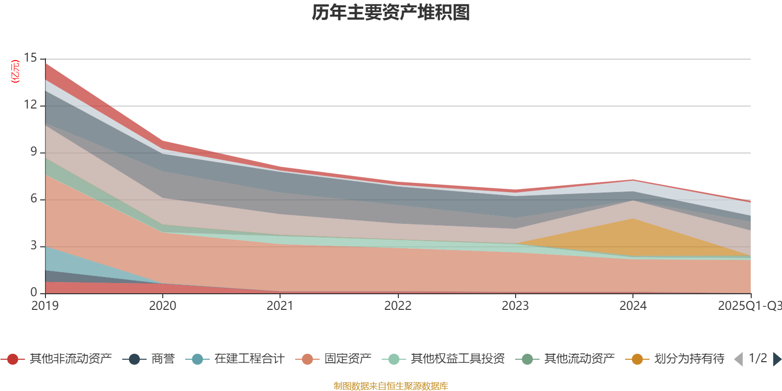 资产重大变化方面,截至2025年三季度末,公司划分为持有待售的资产较上年末减少100%,占公司总资产比重下降32.86个百分点;存货较上年末增加39.69%,占公司总资产比重上升11.42个百分点;其他应收款(含利息和股利)较上年末增加20015.99%,占公司总资产比重上升9.48个百分点;固定资产较上年末增加1.61%,占公司总资产比重上升7.25个百分点。