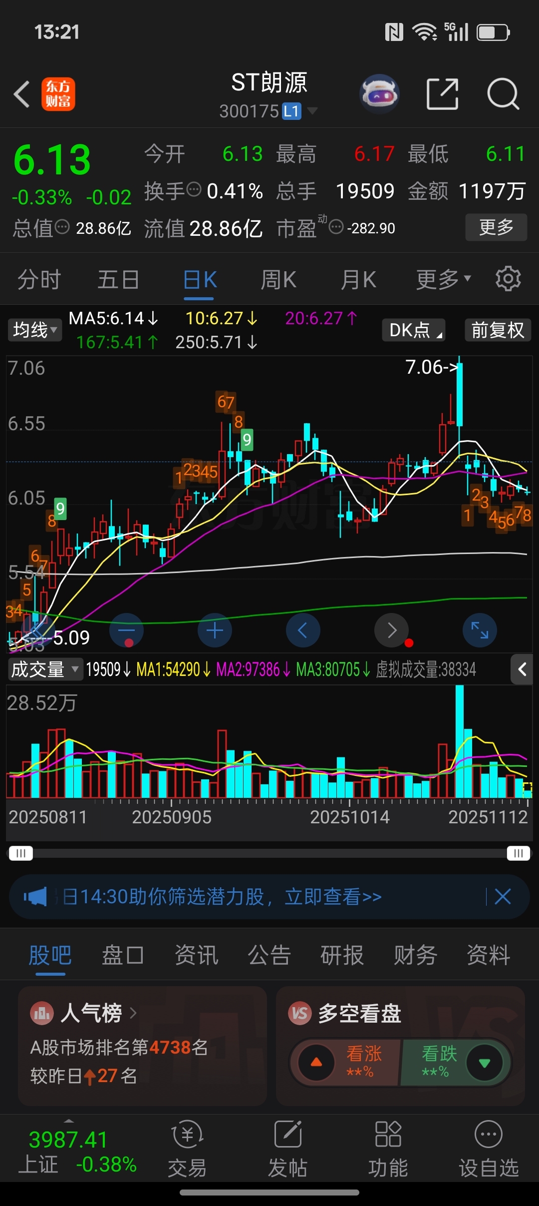 $ST朗源(SZ300175)$ 技术上九转大肠指标明天还有一天调整,抢反弹的资金就进来了……