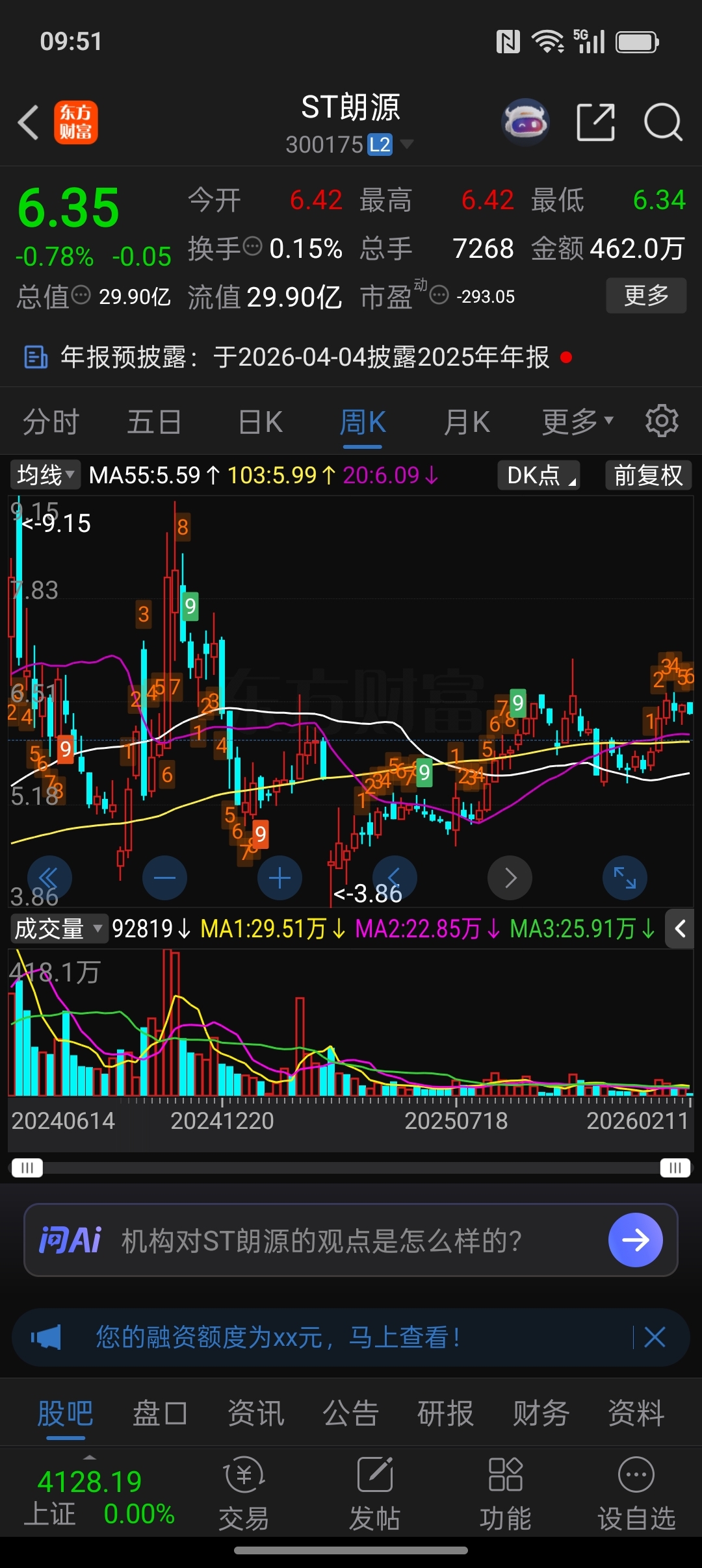 $ST朗源(SZ300175)$ 周线支撑位在5.99,还是有点远……