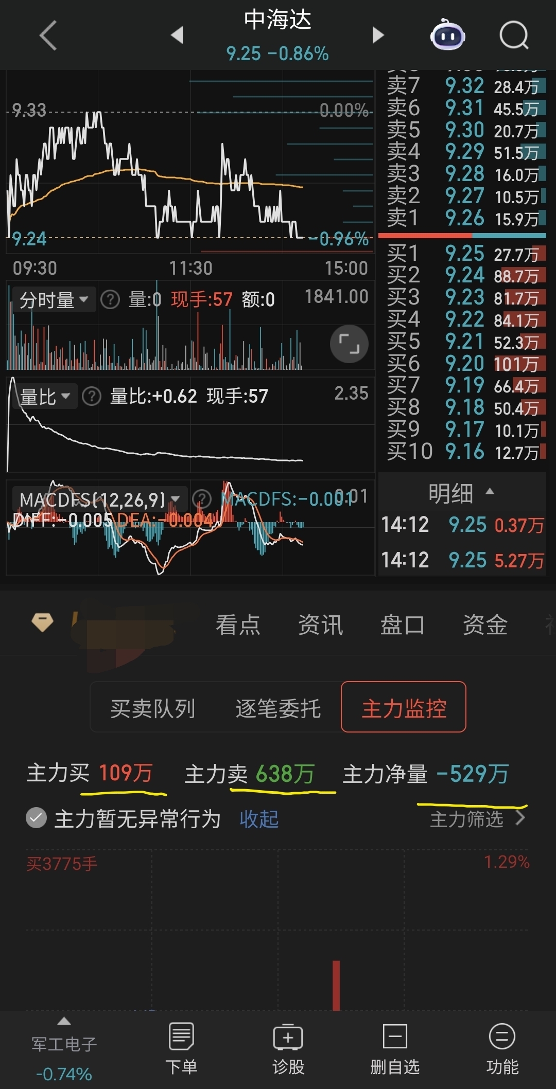 $中海达(SZ300177)$ 主力昨日买进金额今日目前全部出完等于一分钱都没有留下,估计一会还会出一部分,主力根本没有建仓吸筹的迹象还要跌的[棒]