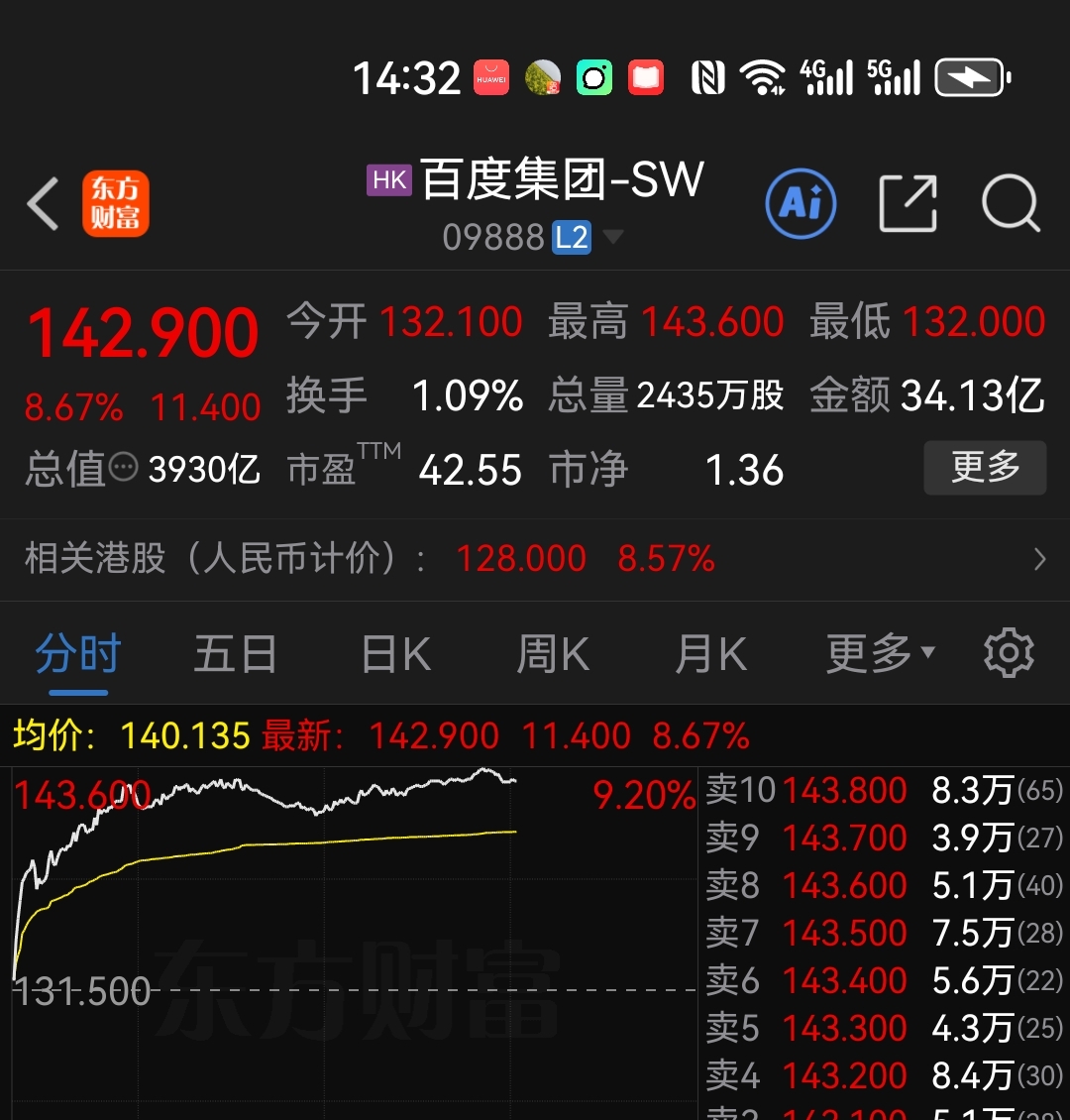 2026年第一天交易,港股,百度概念哥大涨9%。属于百度概念的中海达,星期一开盘
