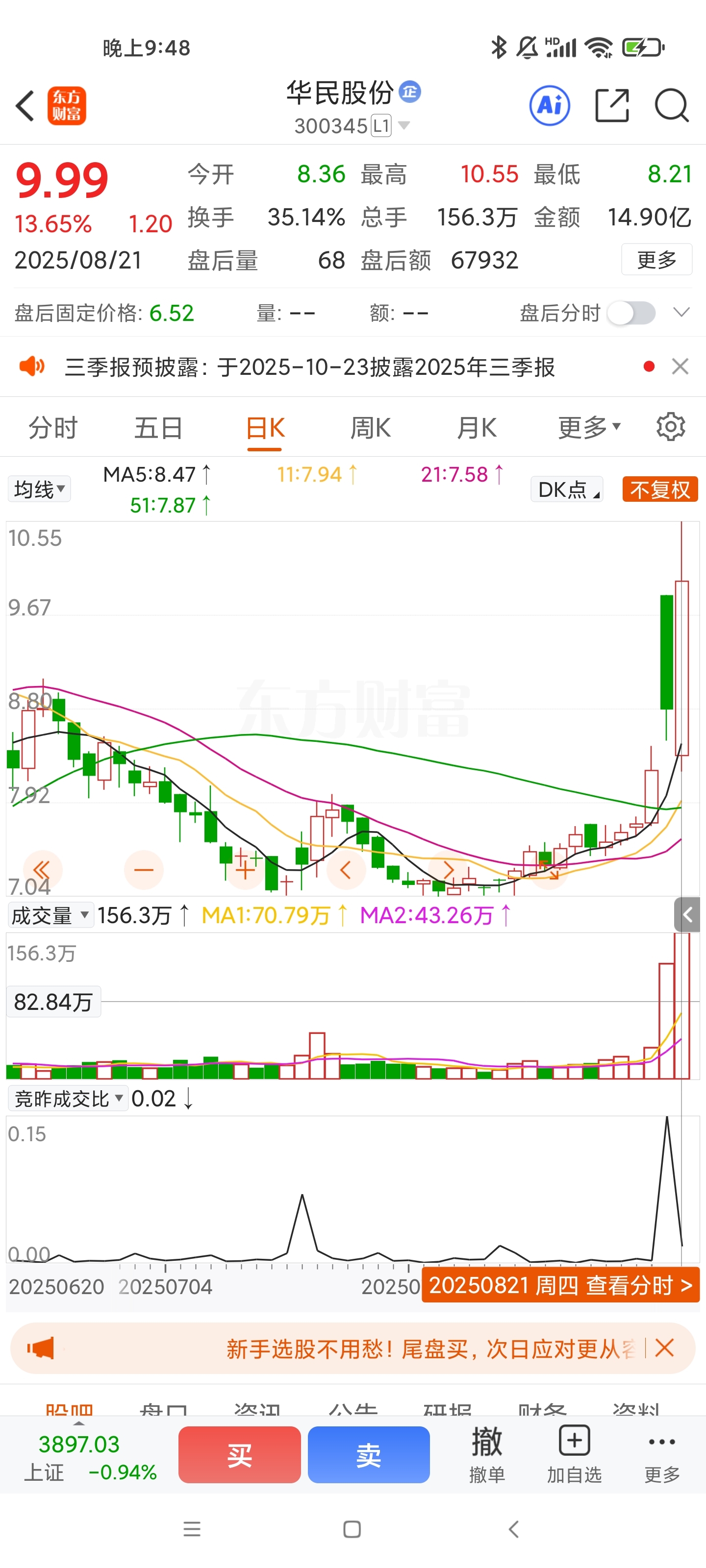 如果是10.70可以尝试一下,看能不能像8.21号的华民一样一天挣30个点的运气