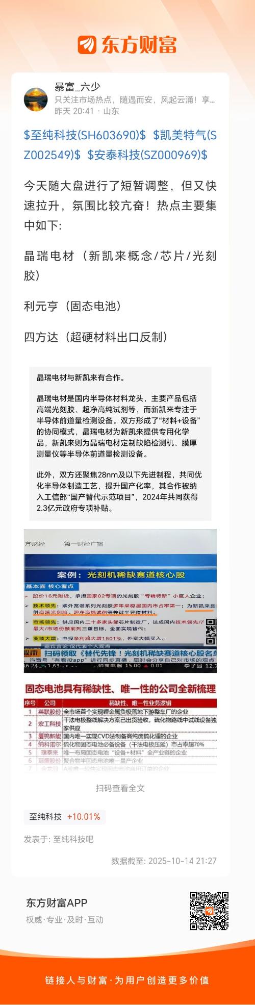 $至纯科技(SH603690)$ $凯美特气(SZ002549)$ $安泰科技(SZ000969)$