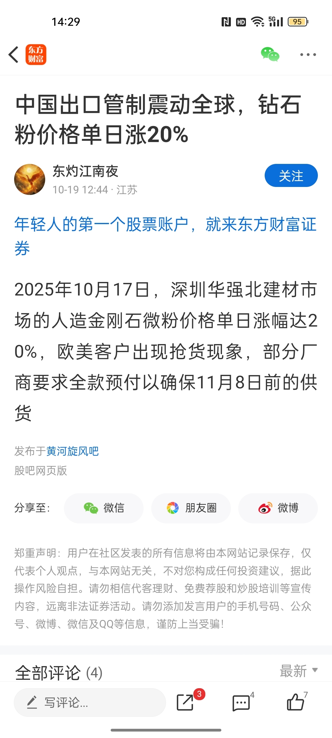 温馨提示: 1.根据《证券法》规定,禁止编造、传播虚假信息或者误导性信息,扰乱证券市场;2.用户在本社区发表的所有资料、言论等仅代表个人观点,与本网站立场无关,不对您构成任何投资建议。用户应基于自己的独立判断,自行决定证券投资并承担相应风险。《东方财富社区管理规定》