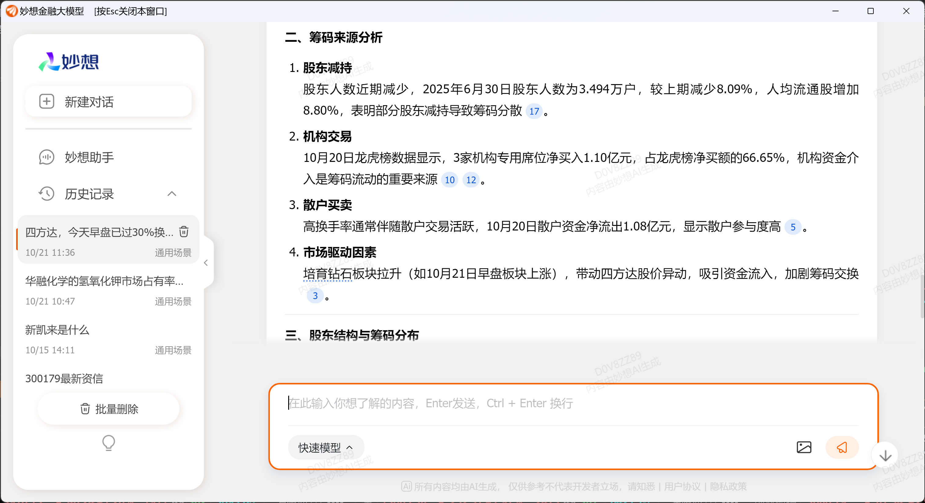 四方达,今天早盘已过30%换手了,机构在高举高打?还是一天行程?