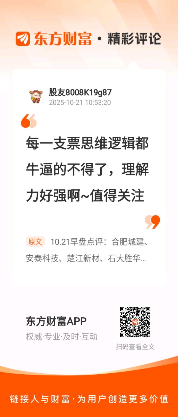 $四方达(SZ300179)$$天风证券(SH601162)$$中际旭创(SZ300308)$//@股友8008K19g87 :每一支票思维逻辑都牛逼的不得了,理解力好强啊~值得关注