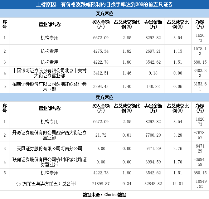 多主力现身龙虎榜,四方达上涨11.10%(10-21)