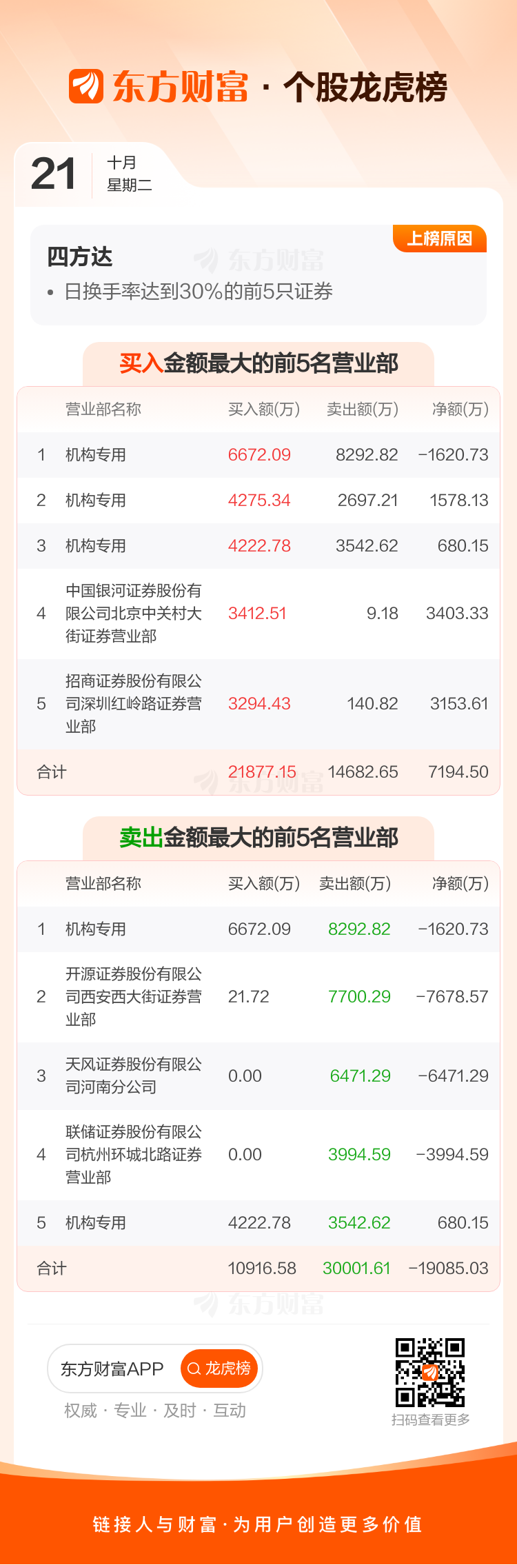 四方达(300179)龙虎榜数据(10-21)