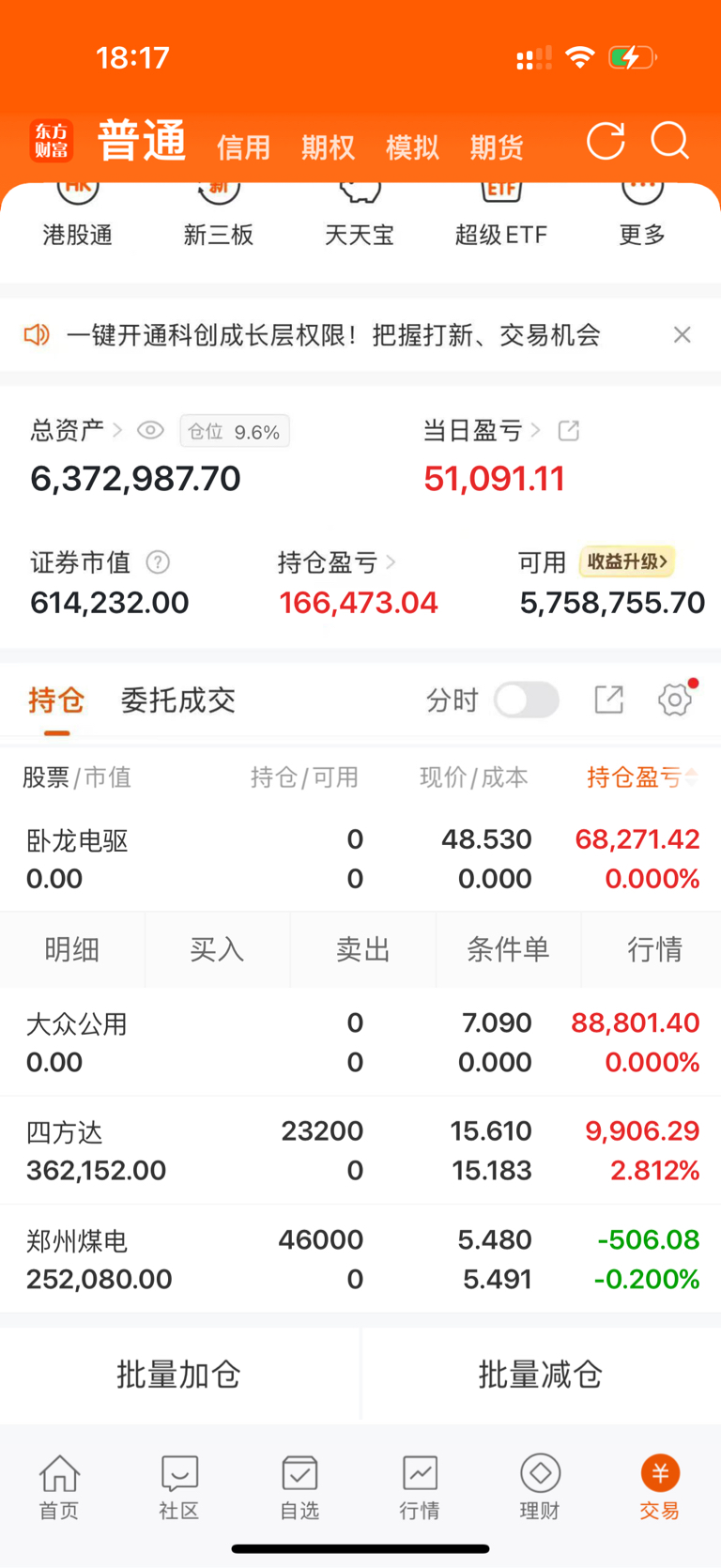 今天分别建仓了四方达,郑州煤电,轻仓博弈!