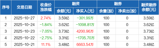 四方达:融资净偿还301.99万元,融资余额3.59亿元(10-27)