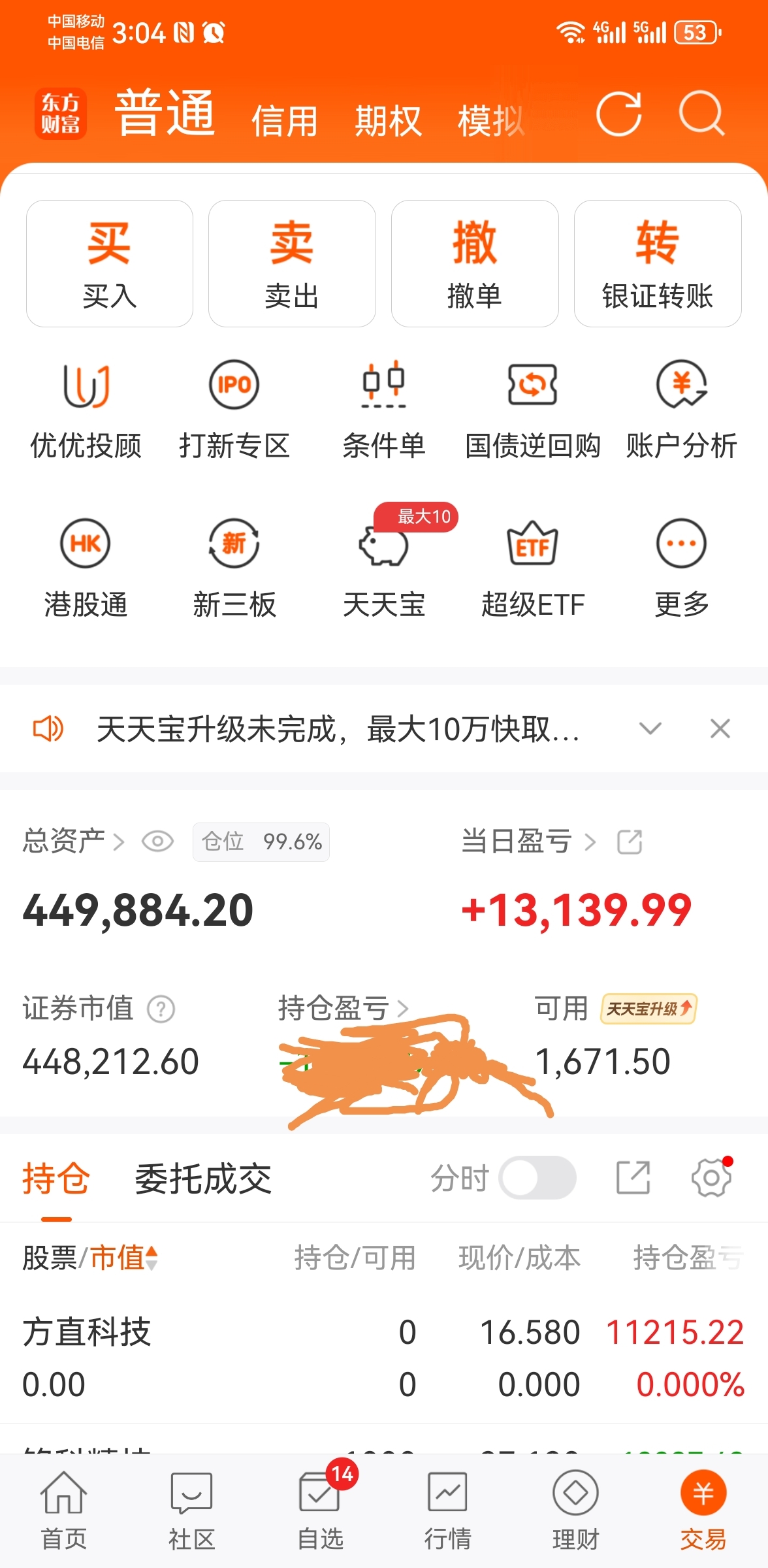 今天低位补满仓,从亏一万到赢利两万多时没做T,掉下来一万多,但这个数字红太吉祥了