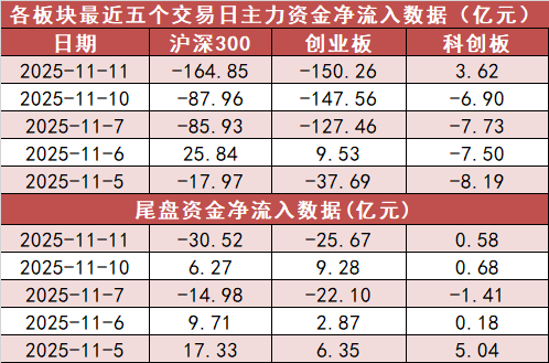沪深300今日主力资金净流出164.85亿元,创业板净流出150.26亿元,科创板净流入3.62亿元。