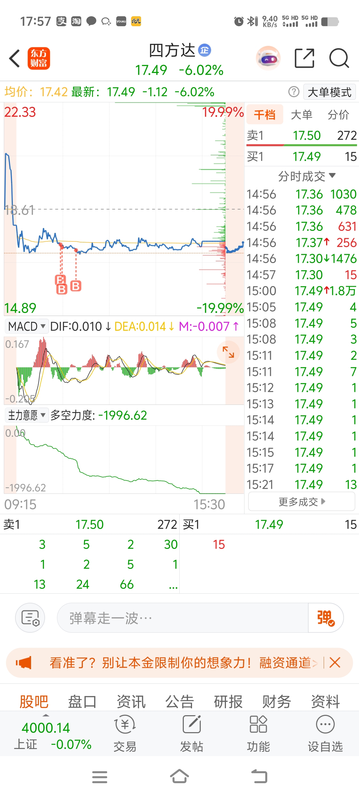 $四方达(SZ300179)$ 刚开通的,这玩意15点后还能交易?还是我卡了