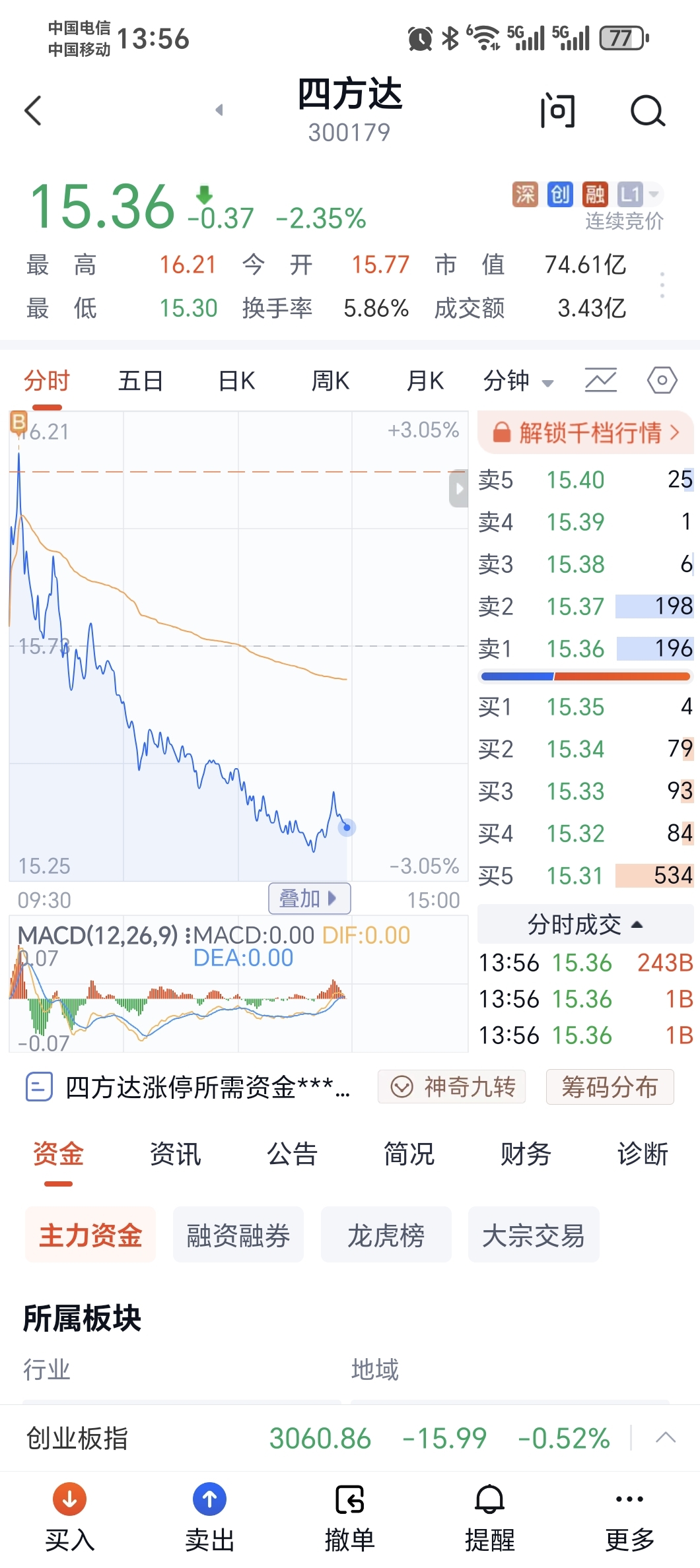 $四方达(SZ300179)$ 怪我咯,就两手……被我砸下来了