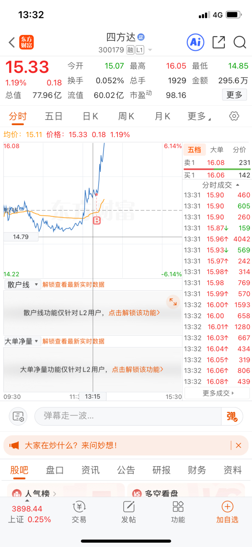 午盘低吸介入的$四方达(SZ300179)$ 应该不会让我失望