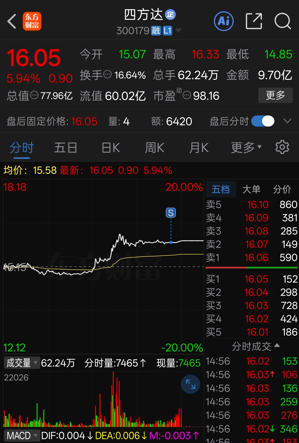 $四方达(SZ300179)$ 留下的发财!感谢主力不杀之恩!