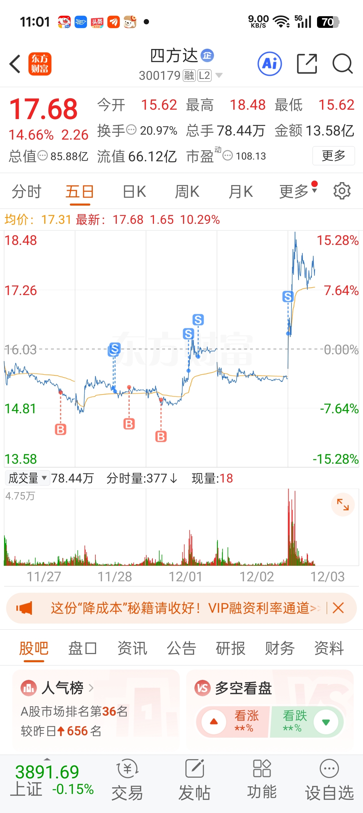 $四方达(SZ300179)$ 知足常乐,26%赢利,告一段落我还会回来的