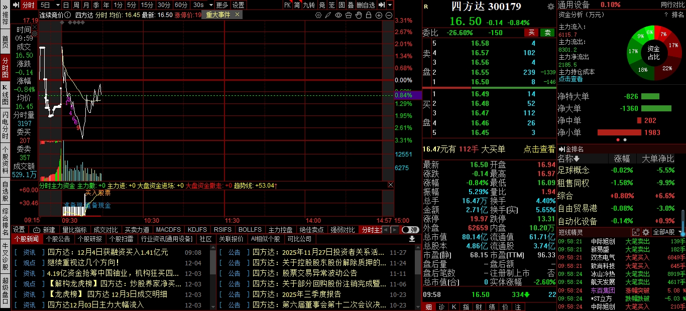 $四方达(SZ300179)$ 主力压单,逼迫小散贱卖。特大的压单毫秒撤单