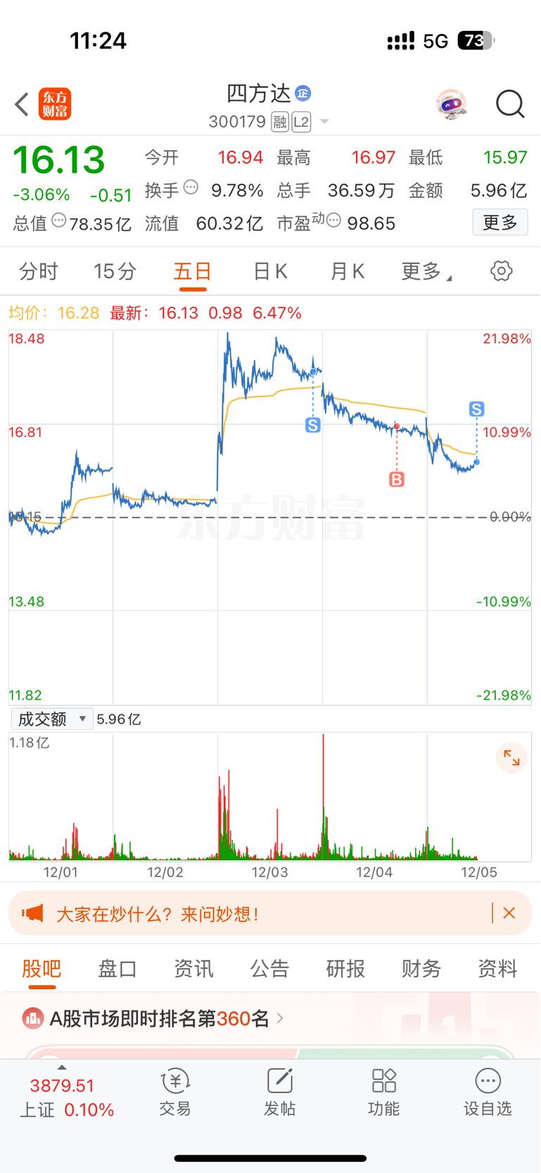 $四方达(SZ300179)$ 主力误我!先走为敬。