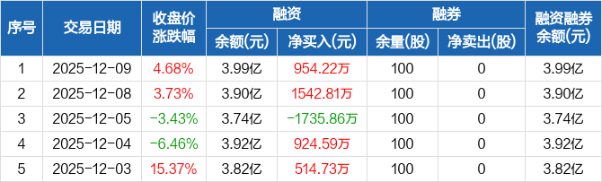 四方达:融资净买入954.22万元,融资余额3.99亿元(12-09)
