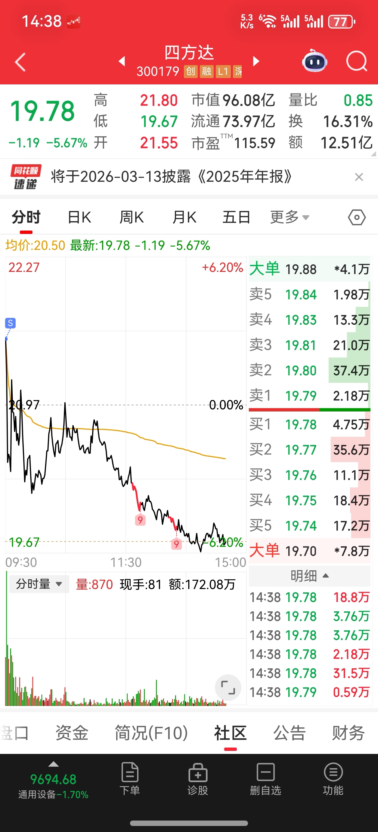 $四方达(SZ300179)$ 我走了,里面的兄弟,再见