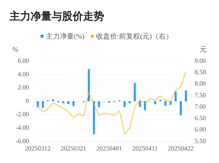 华峰超纤今日主力净量为正,且值较大,表明主力大幅流入,主动买入明显多于主动卖出。华峰超纤今日大涨8.38%,主力拉升明显。
