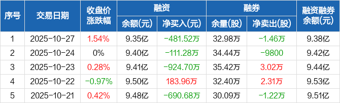 华峰超纤:连续3日融资净偿还累计1517.5万元(10-27)