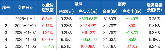 华峰超纤:融资净偿还526.63万元,融资余额9.23亿元(11-11)