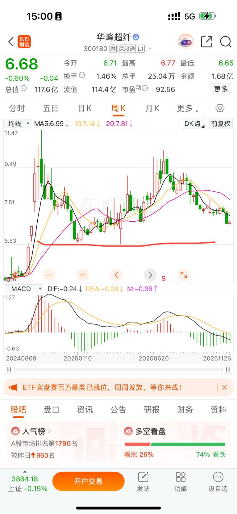 $华峰超纤(SZ300180)$ 5.5这种位置才是强支撑。其他位置都是悬空在那里