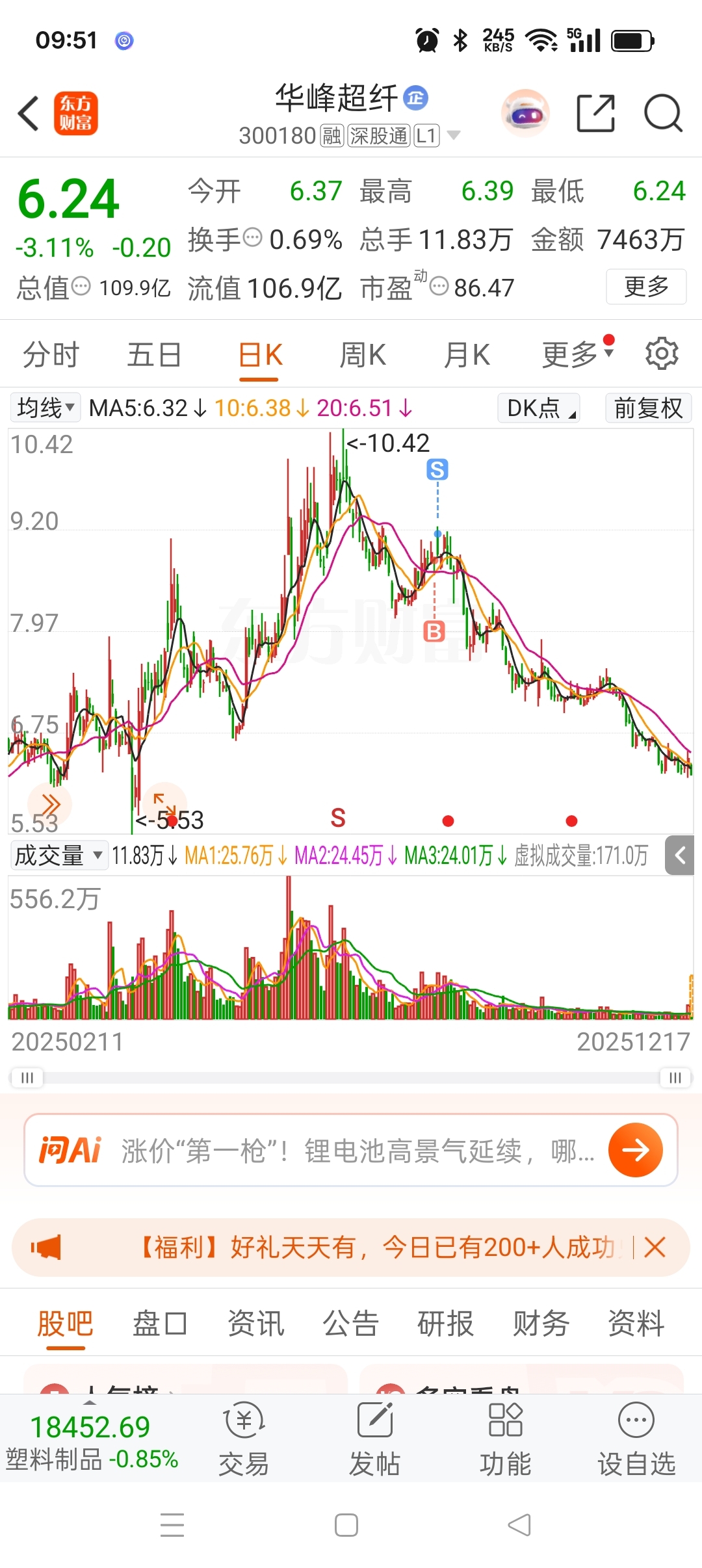 $华峰超纤(SZ300180)$ 当初与你分手不见三十个W,现在回头看看还是对的,不破六不想你,坚持尔康制药