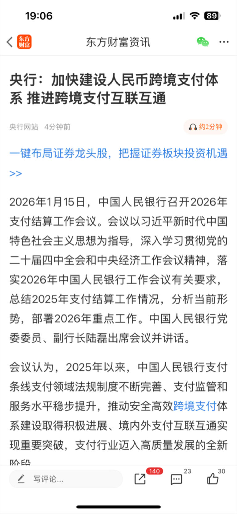 出利好了