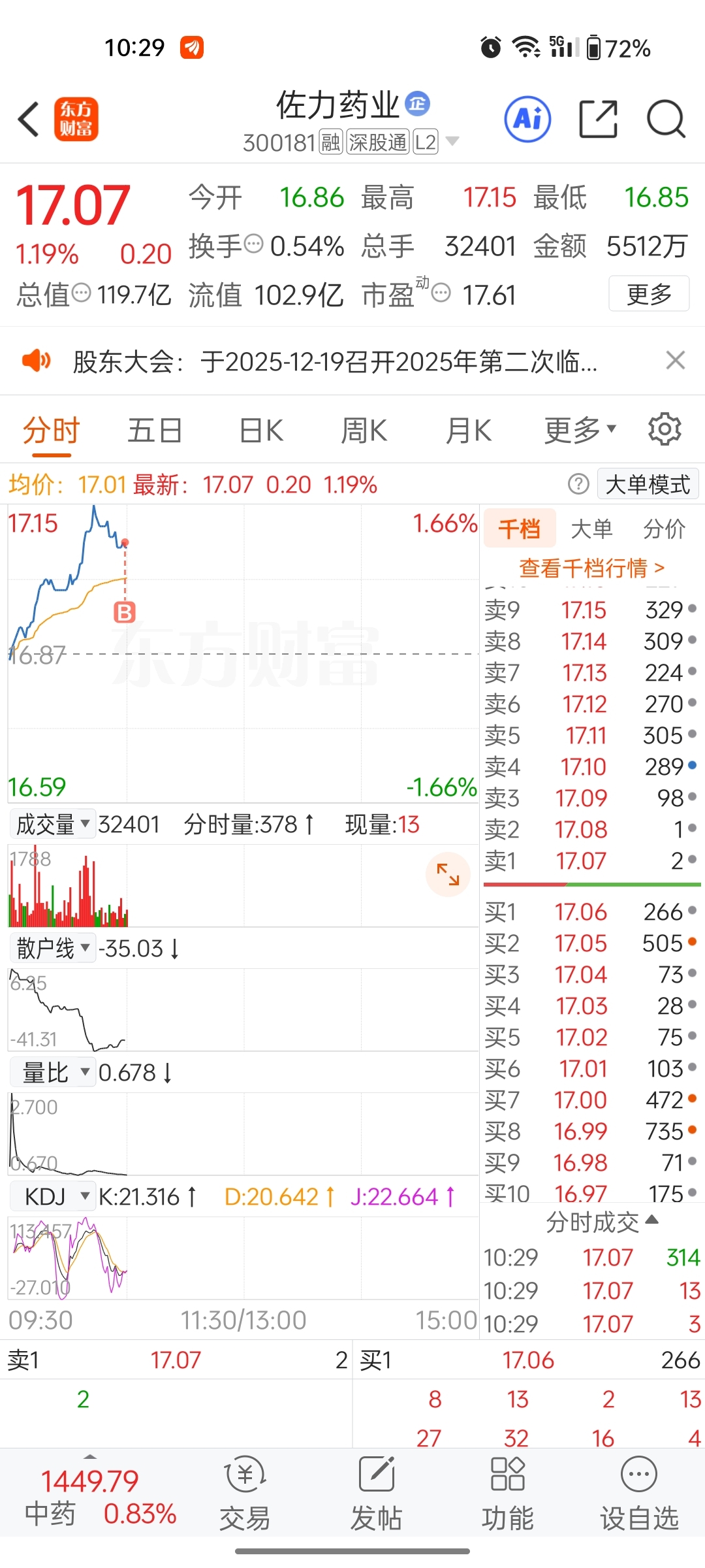 $佐力药业(SZ300181)$ 我决定,追高,为俞跃德清