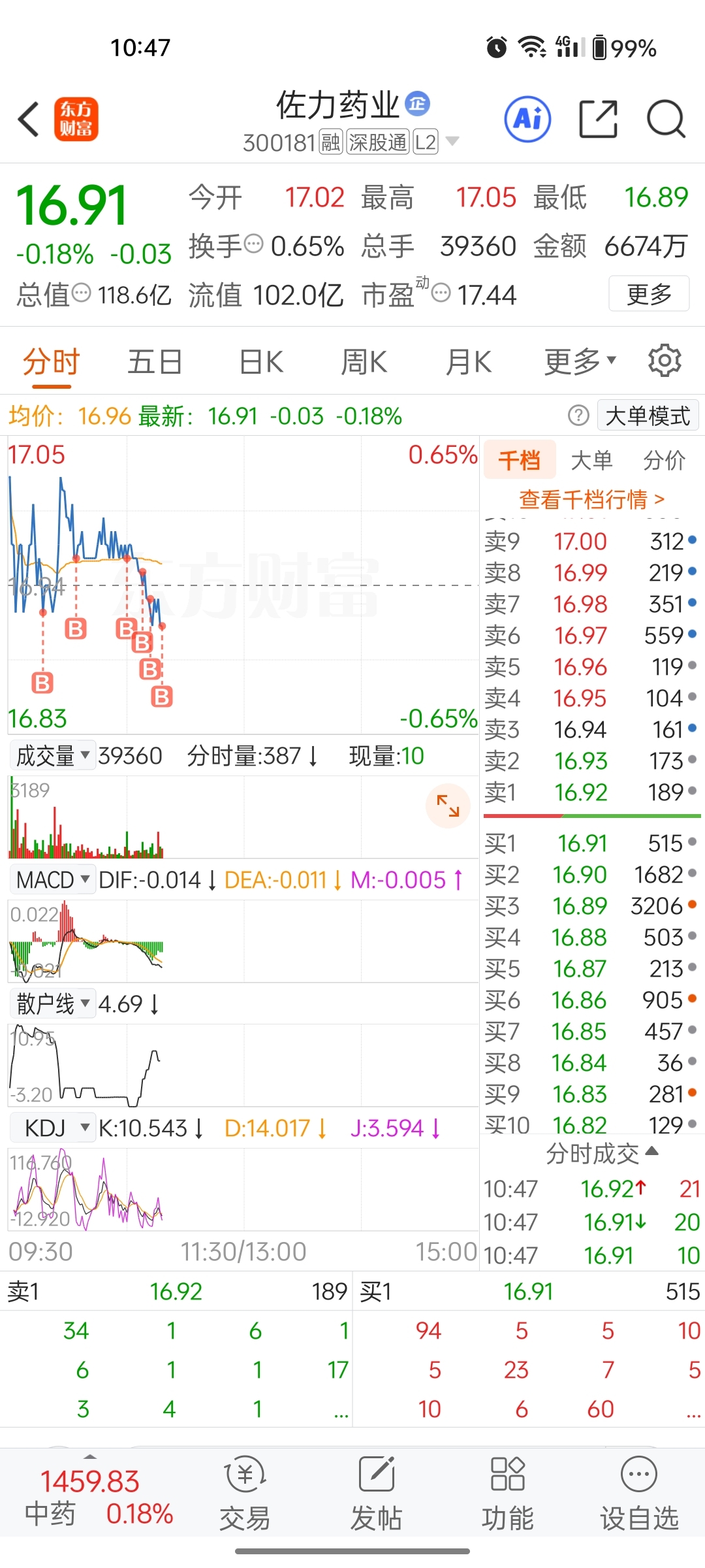 $佐力药业(SZ300181)$ 上午不买了,打死也不