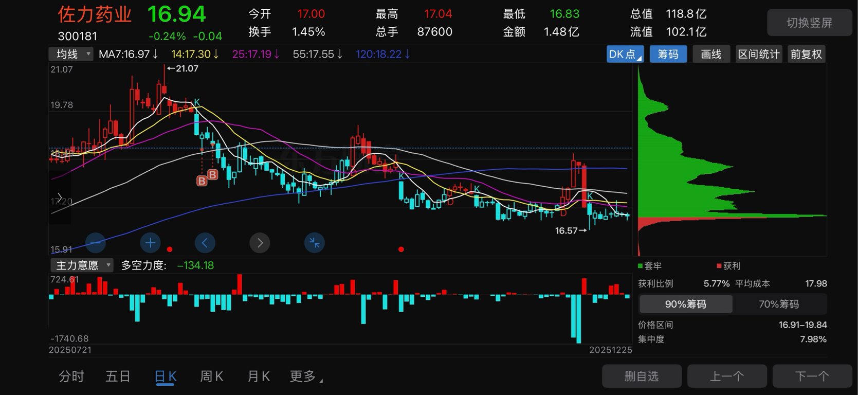 $佐力药业(SZ300181)$ 从筹码分布看,股东们都看好公司,再跌也不卖,大家都在等有人抬轿子。是不是要等半年才能解套?
