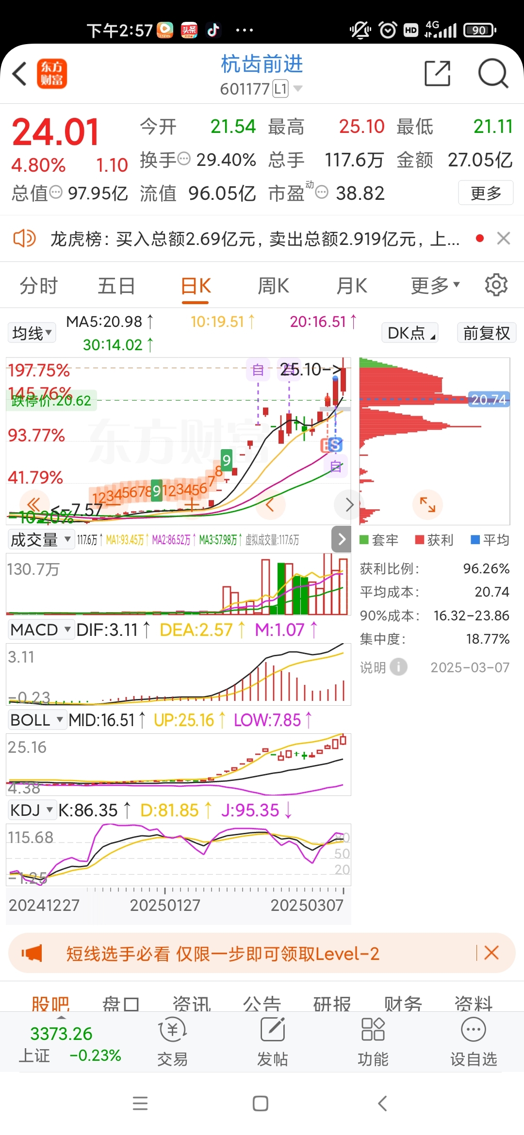 $捷成股份(SZ300182)$ 今天挨套了,自以为挖了个好题材,买在高点,损失2点,止损位是5个点跟30日均线,昨天刚在杭齿出来,看好
