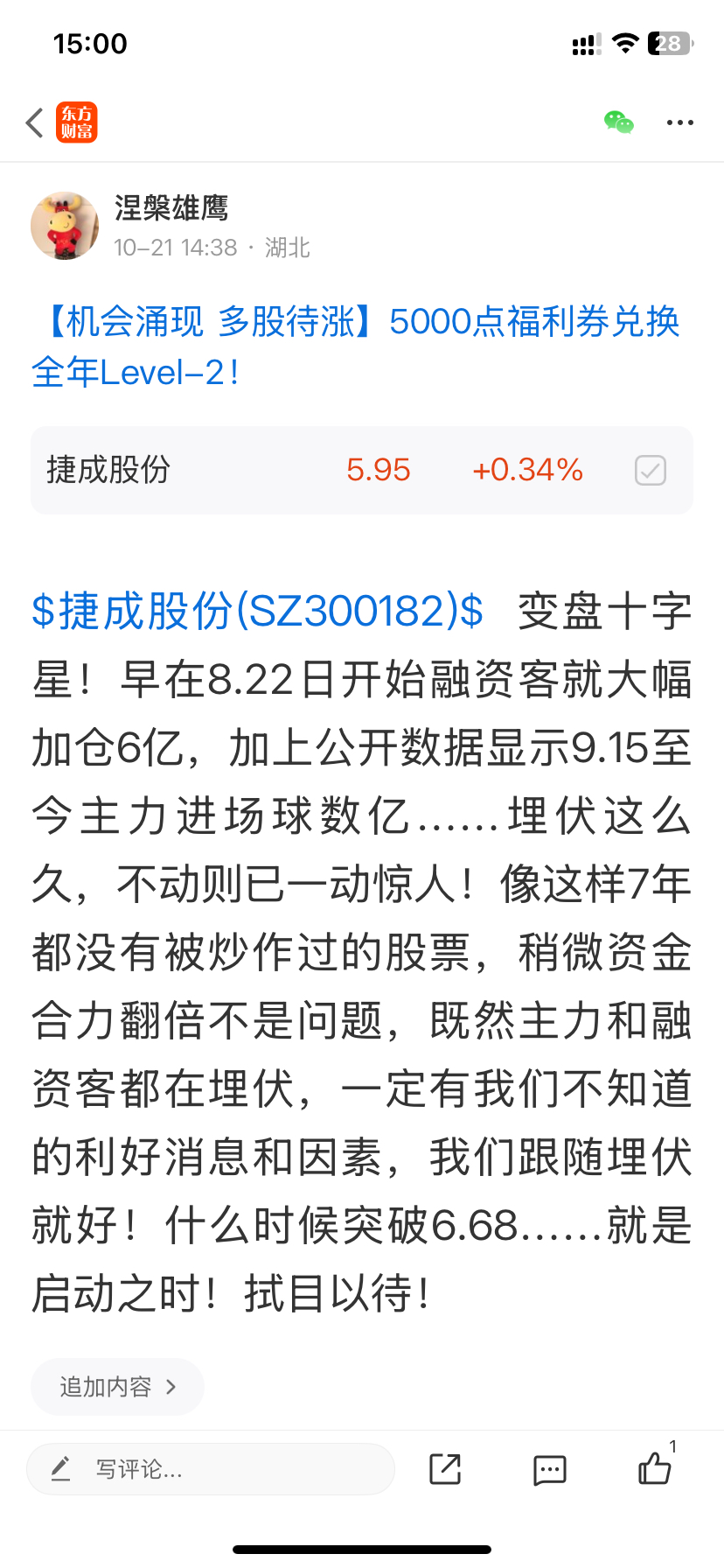 温馨提示: 1.根据《证券法》规定,禁止编造、传播虚假信息或者误导性信息,扰乱证券市场;2.用户在本社区发表的所有资料、言论等仅代表个人观点,与本网站立场无关,不对您构成任何投资建议。用户应基于自己的独立判断,自行决定证券投资并承担相应风险。《东方财富社区管理规定》