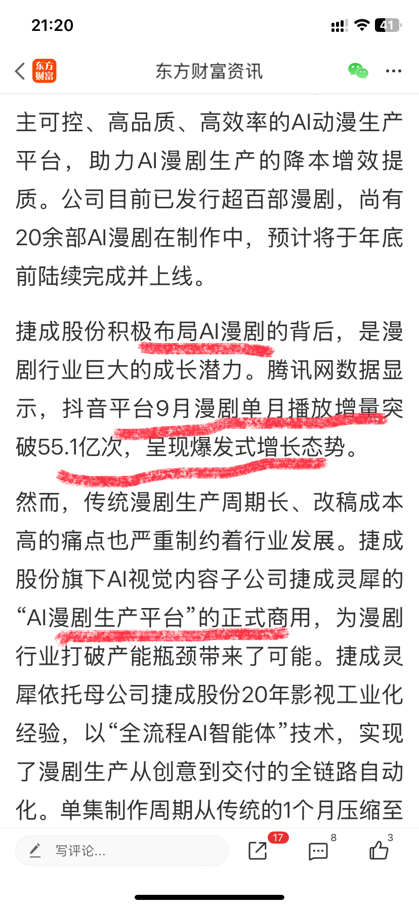 $捷成股份(SZ300182)$ 当散户还在关注业绩的时候,那已经是过去式了!主力资金早就瞄准了漫剧爆发式增长了……近段时间主力布局已久,明天、下周要吃大肉的!期待来一个涨停!不然,你以为人气飙升是业绩披露带来的吗?当然不是,而是捷成进军漫剧市场……