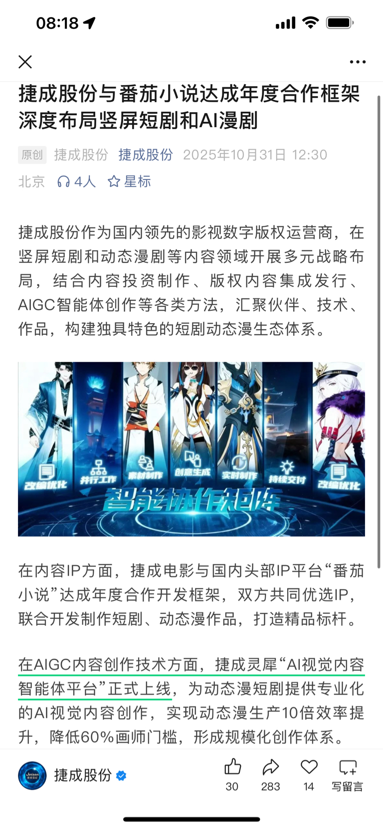 $捷成股份(SZ300182)$ 11月炒作传媒Ai应用!