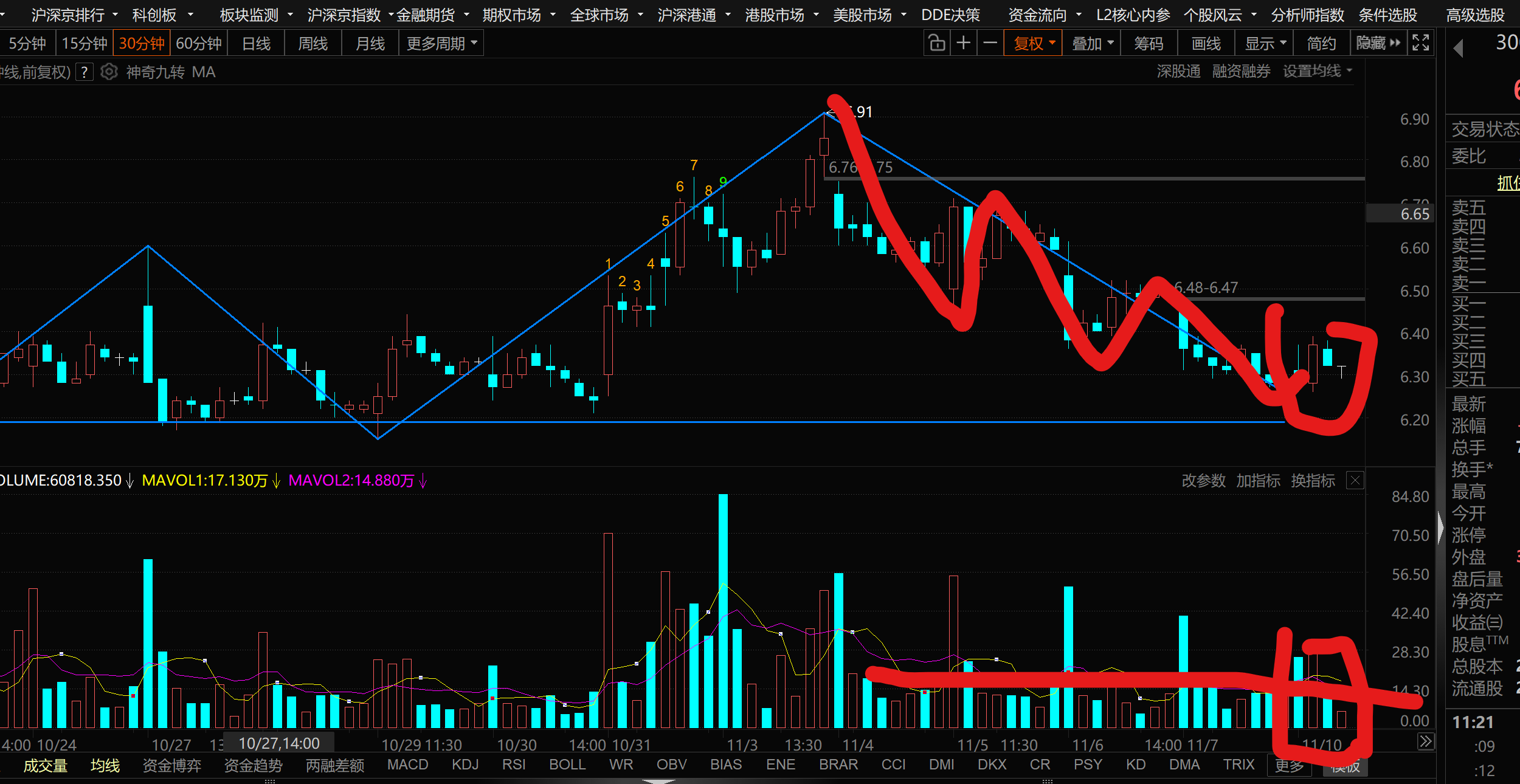 从691新高回下来看 这里走了一个次级别下跌线段
