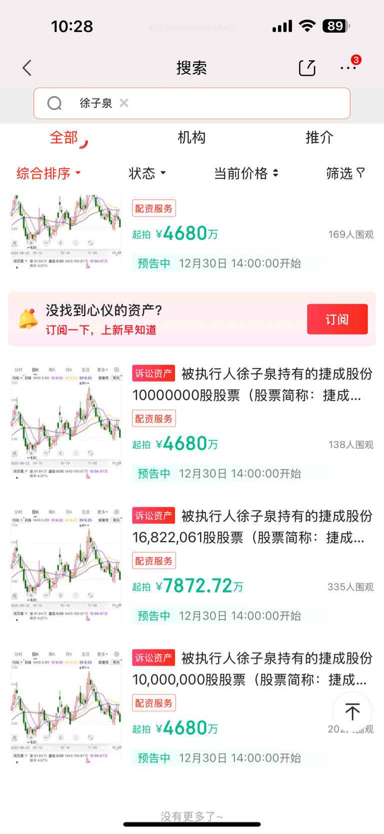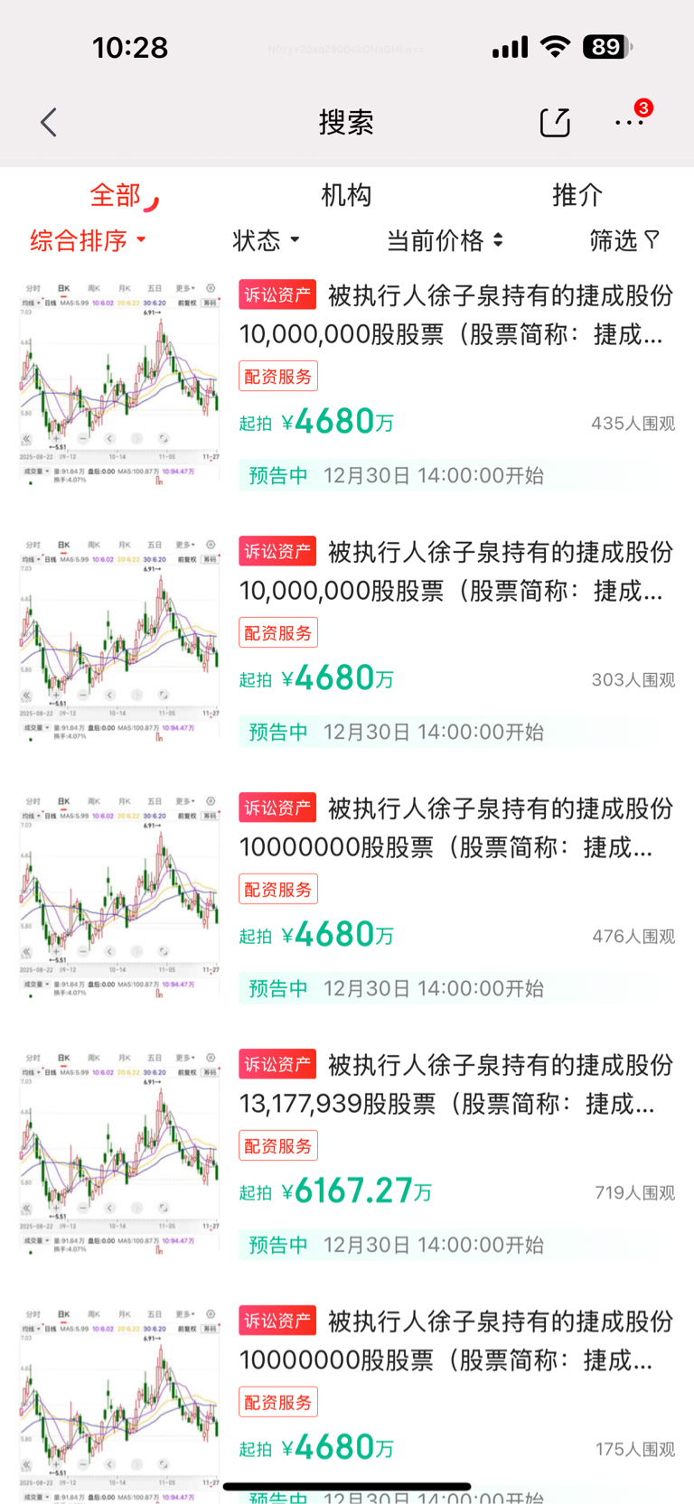 价值5个亿的股权拍卖。12条拍卖,1.3亿股。