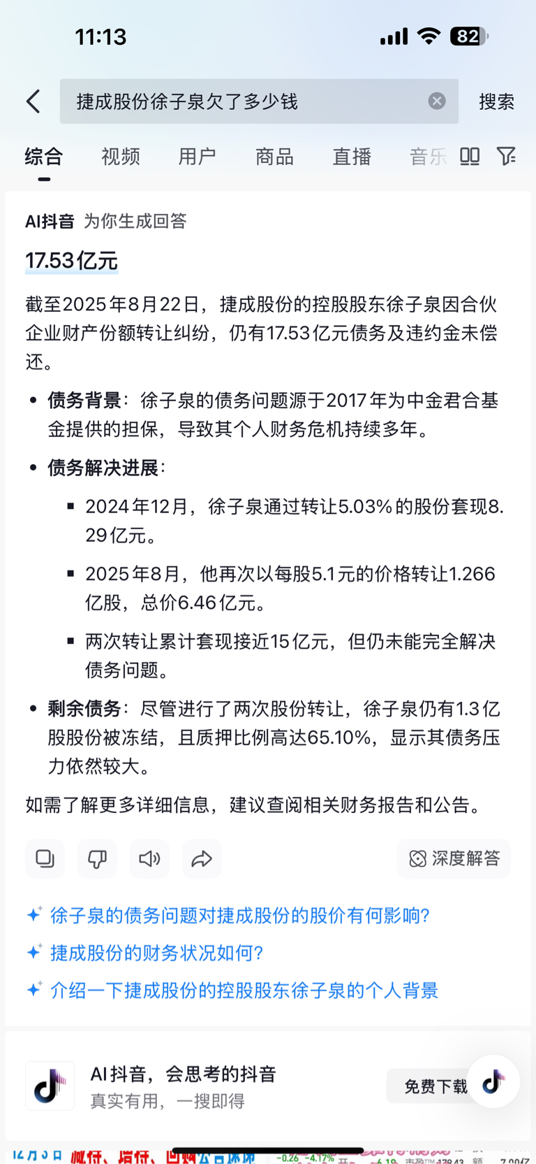 $捷成股份(SZ300182)$ 拍卖完这次股份,徐子泉还得再卖一次股份才够还债。