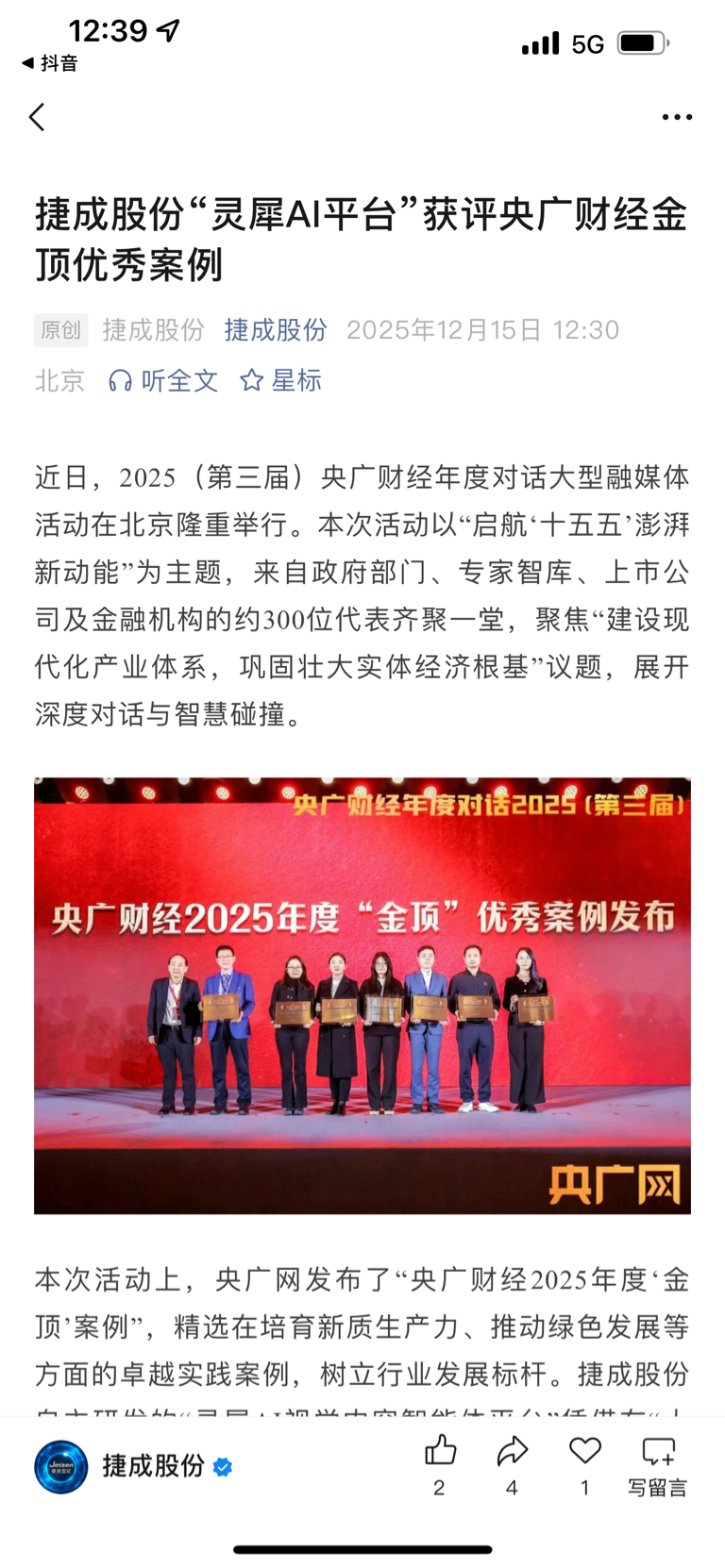 $捷成股份(SZ300182)$