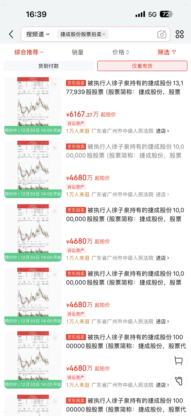 $捷成股份(SZ300182)$ 京东拍卖4.68元/股,12月30号,最低1000万股起拍。